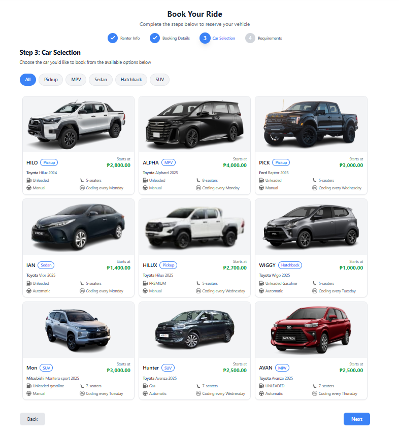 If this is your first time booking, upload all the necessary requirements as image files (e.g., driver’s license, valid ID, etc.).