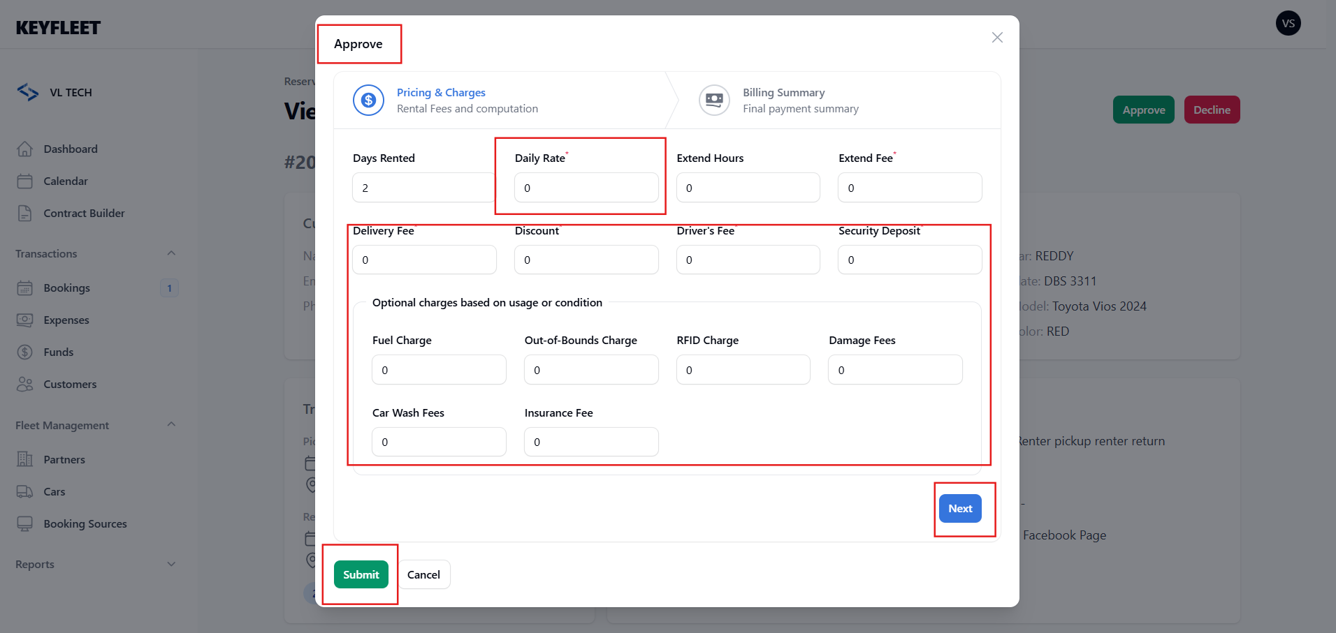 To approve a reservation, simply add the price.